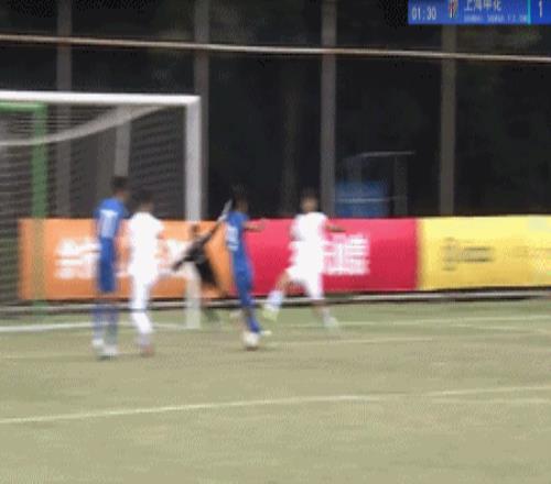 上半场第18分钟,上海申花右侧开出角球,王博涵禁区中路头球冲顶,完成破门,2:1!申花再度取得领先。5分钟之后,陈伟杰在争抢头球时被对手故意撞倒,缔造者队这次恶意犯规一度让比赛终断,差点酿成大规模冲突,缔造者队的达明琼被红牌罚下。上海申花多打一人。